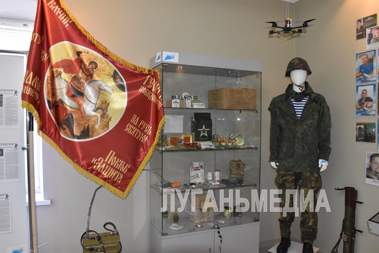 Хронологические рамки нового музейного пространства охватывают период от трагических событий «майдана», народного сопротивления киевским националистам и до исторического выбора жителей ЛНР – воссоединение с Российской Федерацией. В экспозиции представлены многочисленные фотографии, комплекты обмундирования военных, казаков, личные вещи непосредственных участников боевых действий, а также фрагменты вооружения и боеприпасов, обнаруженные после обстрелов ВСУ.