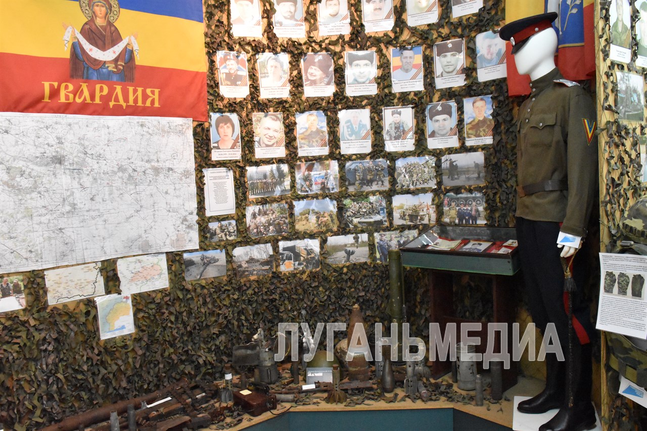 Хронологические рамки нового музейного пространства охватывают период от трагических событий «майдана», народного сопротивления киевским националистам и до исторического выбора жителей ЛНР – воссоединение с Российской Федерацией. В экспозиции представлены многочисленные фотографии, комплекты обмундирования военных, казаков, личные вещи непосредственных участников боевых действий, а также фрагменты вооружения и боеприпасов, обнаруженные после обстрелов ВСУ.
