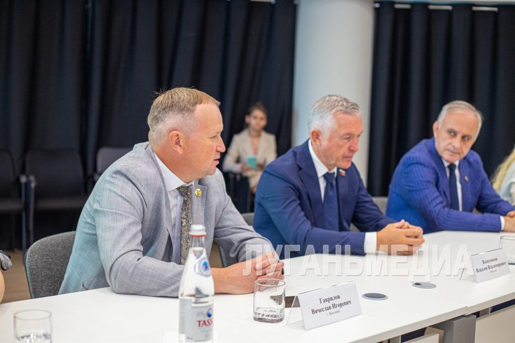 Параллельно состоялась встреча глав делегаций, модераторами которой выступили Председатель Народного Совета Луганской Народной Республики Денис Мирошниченко и врип главы города Луганска Яна Пащенко.