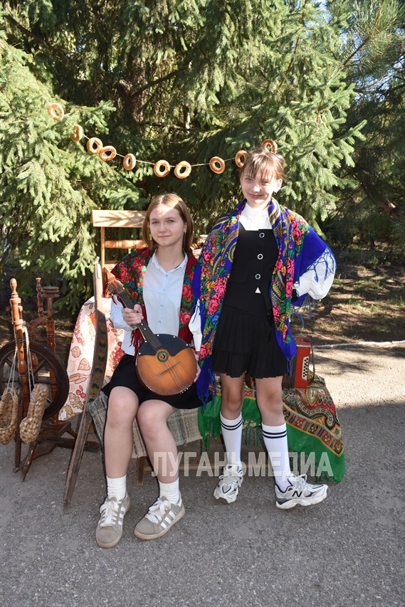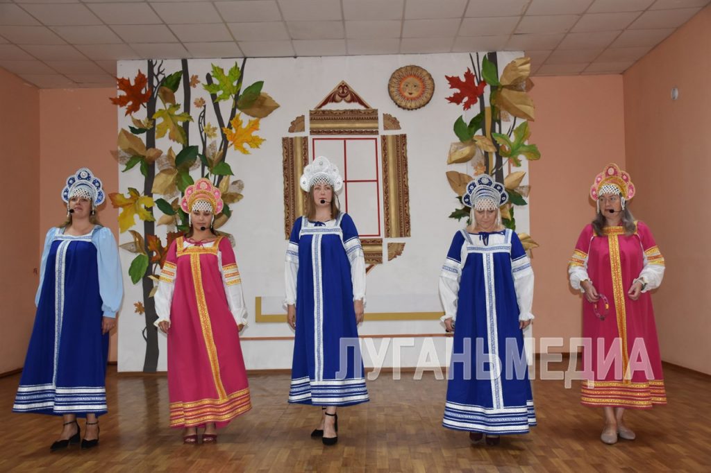 В фойе центра демонстрировались творческие работы кружковцев, а перед входом расположилась фотозона с предметами обихода русской деревни.