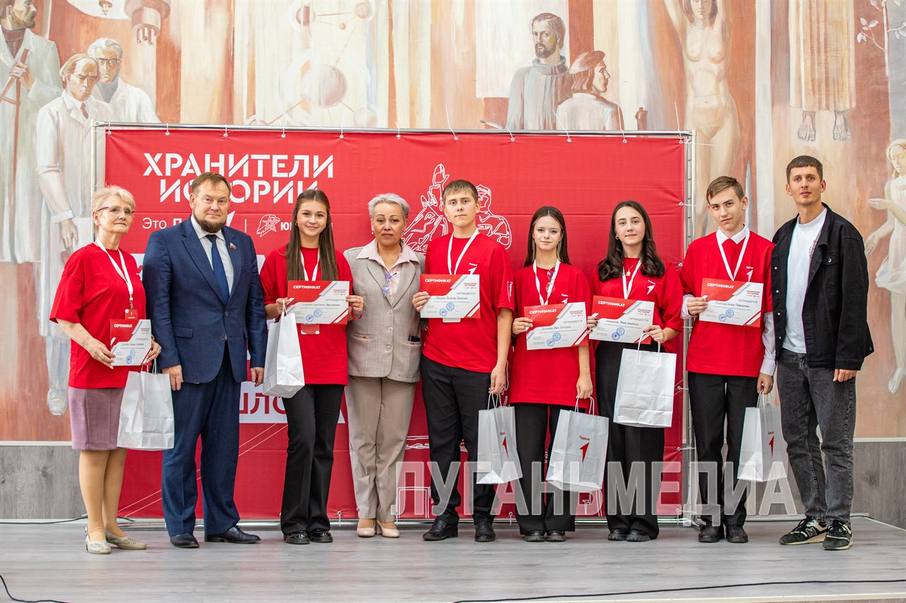 – Хочу от имени Главы ЛНР Леонида Пасечника поблагодарить вас за такую важную работу – сбережение родной истории, – сказала она. – В нынешних условиях переписывание прошлого, к сожалению, не представляет особого труда. Для ряда государств придумывается совсем иная история, чем была на самом деле. И хорошо, что есть исторические факты, артефакты и в том числе еще живые люди, которые могут рассказать правду о событиях, например, Великой Отечественной войны. И сейчас вы, ребята, живете в непростое время. Но несмотря на это, у вас есть возможность сохранять и передавать дальше информацию о тех исторических событиях, которые происходят в наши дни. Я уверена, что все у вас получится и что нашу страну ждет великое будущее!