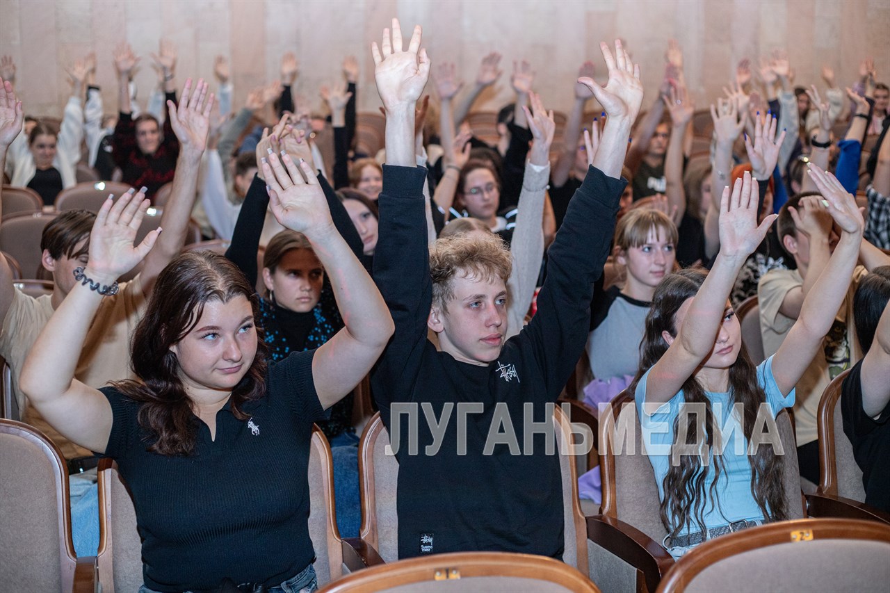 – Для этого не нужны большие бюджеты и профессиональные камеры. Надо просто подумать, как устроено кино, почитать хорошие книги на эту тему, собрать команду – и снимать фильмы, ведя через него диалог с людьми и донося им свои идеи. В Луганске сфера кинематографа находится на стадии становления. А это значит, что есть перспектива для развития. Поэтому сидящие в этом зале студенты могут через некоторое время представлять свои фильмы на кинофестивалях и собирать полные залы зрителей.