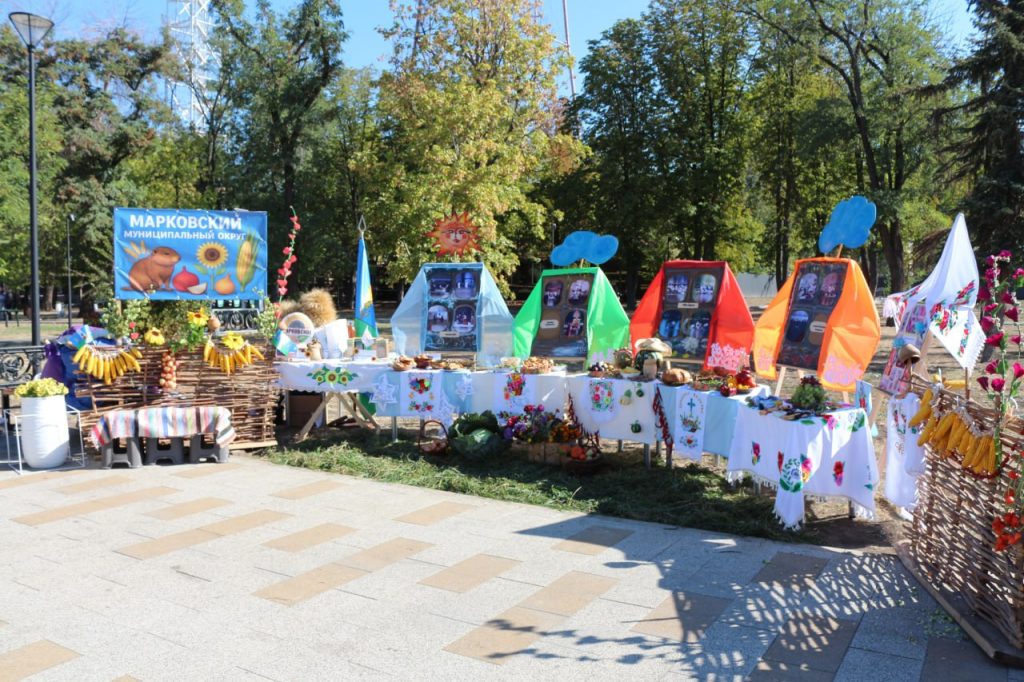 Марковчане представили на фестивале экспозицию, демонстрирующую достижения округа. Особый интерес людей вызвали оригинальные декорации, созданные сотрудниками Дома культуры, которые отражали великолепие и богатство родной земли в разные времена года.