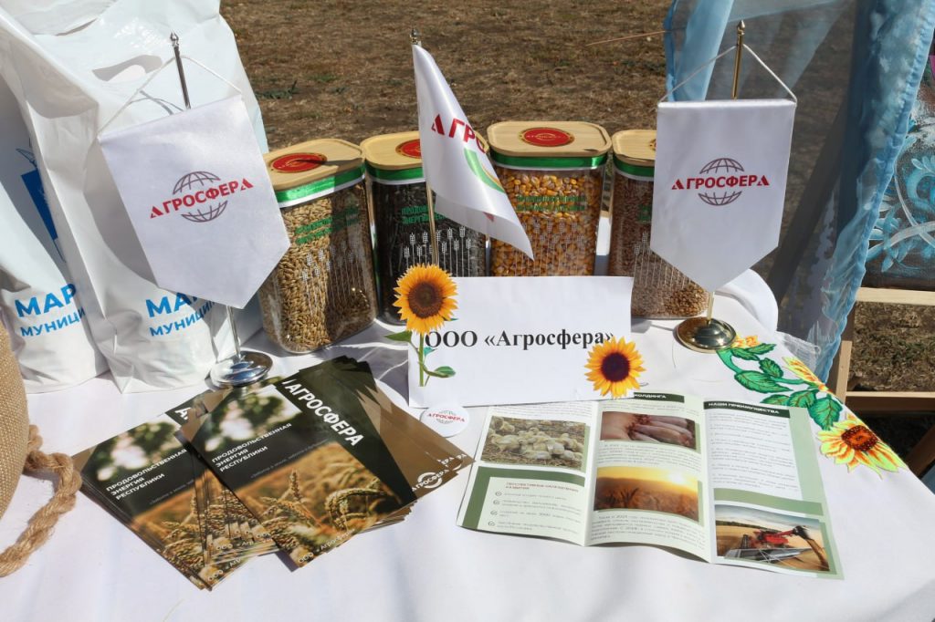 На выставке МРДК были представлены образцы зерновых культур от местных сельхозпредприятий, знаменитый лук, а также крупные овощи и фрукты, выращенные местными аграриями.