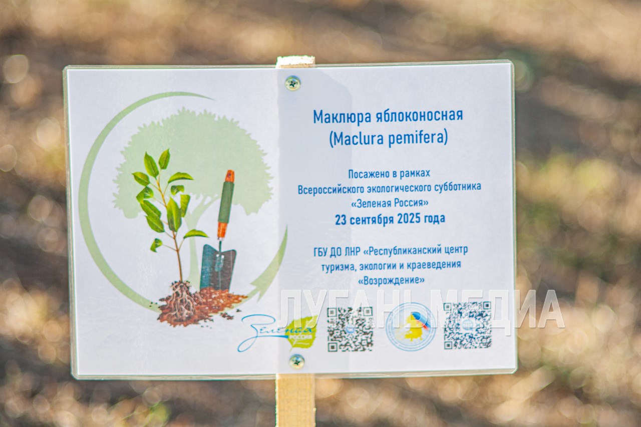 – Благодаря таким мероприятиям детям прививается любовь к природе и Отечеству, – отметила она. – Сегодня ученики Луганского экономико-правового лицея имени Героев «Молодой гвардии» высадили 10 саженцев маклюры яблоконосной, а также навели порядок на мемориале. Кстати, эти маленькие деревья были выращены силами детей-юннатов нашего центра.