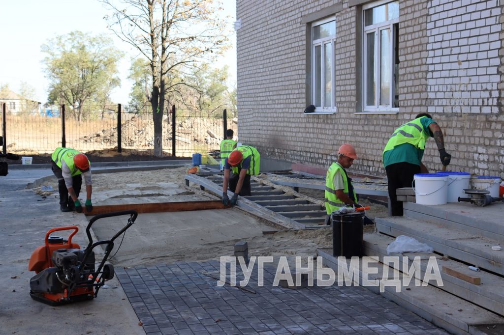 – На сегодняшний день наша задача – немного ускориться с отделкой туалетов, нужно оформить стены плиткой, и пол – керамогранитом. Установить унитазы, раковины. Так что мы уже на завершающем этапе. В работе сейчас задействовано 27 специалистов. И, поскольку на улице мы выполняем укладки брусчатки – используем экскаватор и КамАЗ для подвоза песка. Во дворе уже готовы теневые навесы и уложено резиновое покрытие. Все уже чисто и красиво. Установим скамейки, заполним песочницы – и дети смогут играть. Чистовую отделку планируем закончить к 10 октября, с этого дня начнется и сборка мебели – уточнила Елена Викторовна.