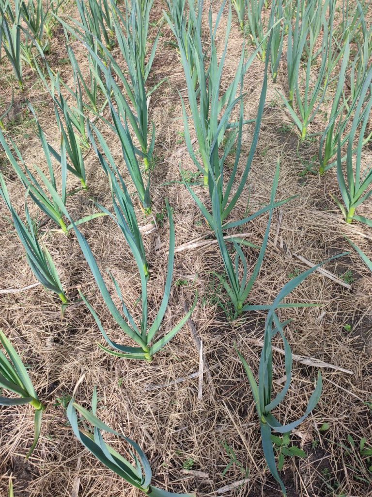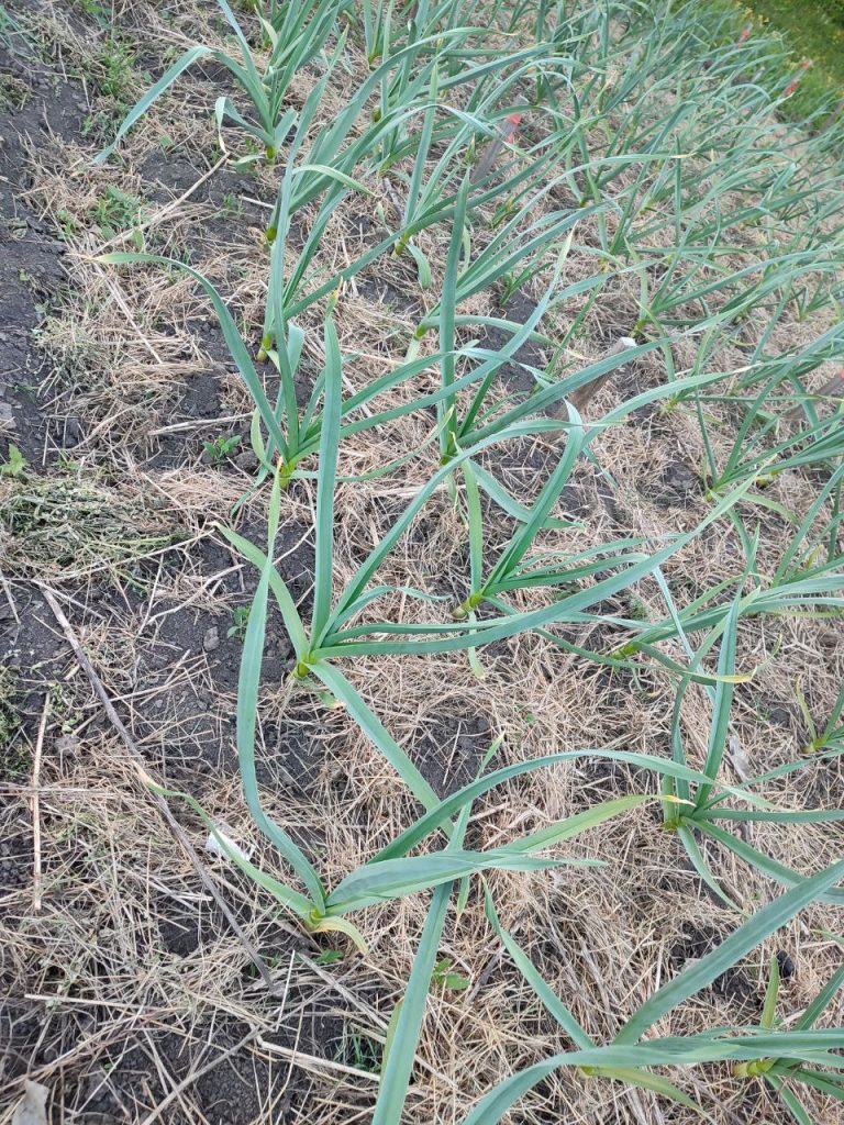 Мульча защищает не столько от вымерзания, сколько от перегрева почвы.  В начале мая солнце уже довольно сильное, и почва может нагреваться до критической температуры, что останавливает рост чеснока. Мульча помогает сохранить оптимальную температуру для роста и развития растений. Благодаря мульче мы получаем крупные головки чеснока массой 100–150 граммов!