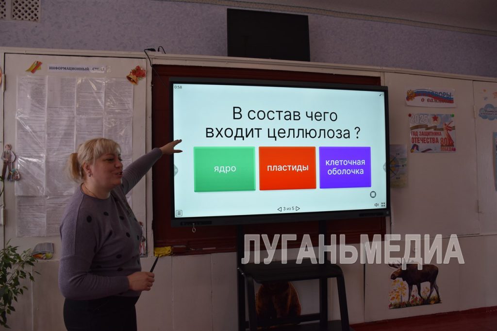 – В краснолучском округе продолжается обзор полученного оборудования. Сегодня обучающиеся и педагоги Краснолучской школы № 3 продемонстрировали полученное оборудование для проведения лабораторных работ по химии, биологии и использование интерактивных панелей. Мы увидели, что ребята с удовольствием и интересом применяют полученное оборудование на уроках.