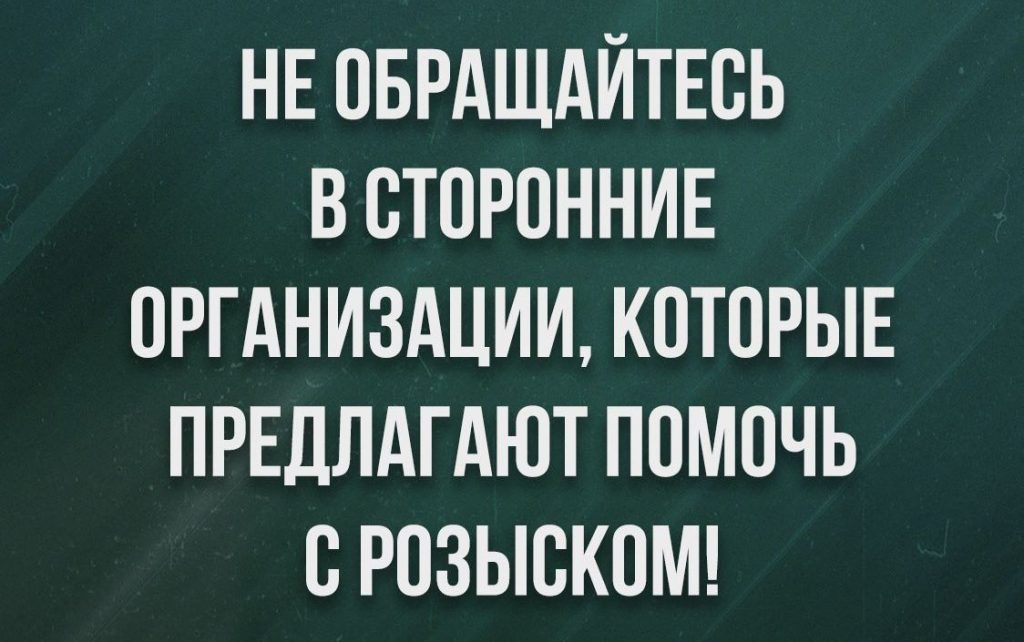 Вместе с тем на различных ресурсах в интернете и в социальных сетях размещаются предложения по оказанию помощи в розыске, в том числе на платной основе.