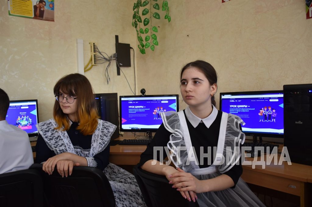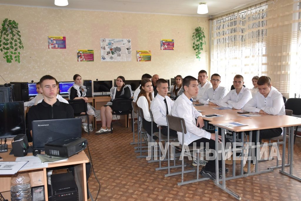 И.о. министра цифрового развития, связи и массовых коммуникаций ЛНР Владимир Харитонов и участник кадрового проекта «Герои Луганщины» Алексей Андреев в рамках проекта «Урок цифры» провели открытое занятие для учеников Зимогорьевской гимназии им. Воинов-интернационалистов.