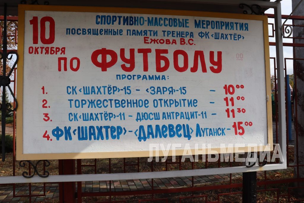 В пятницу, 10 октября, в Свердловске на стадионе имени дважды Героя Советского Союза Николая Горюшкина спортивного комплекса «Шахтер» состоялся традиционный турнир, посвященный памяти тренера футбольного клуба «Шахтер» Владимира Ежова.