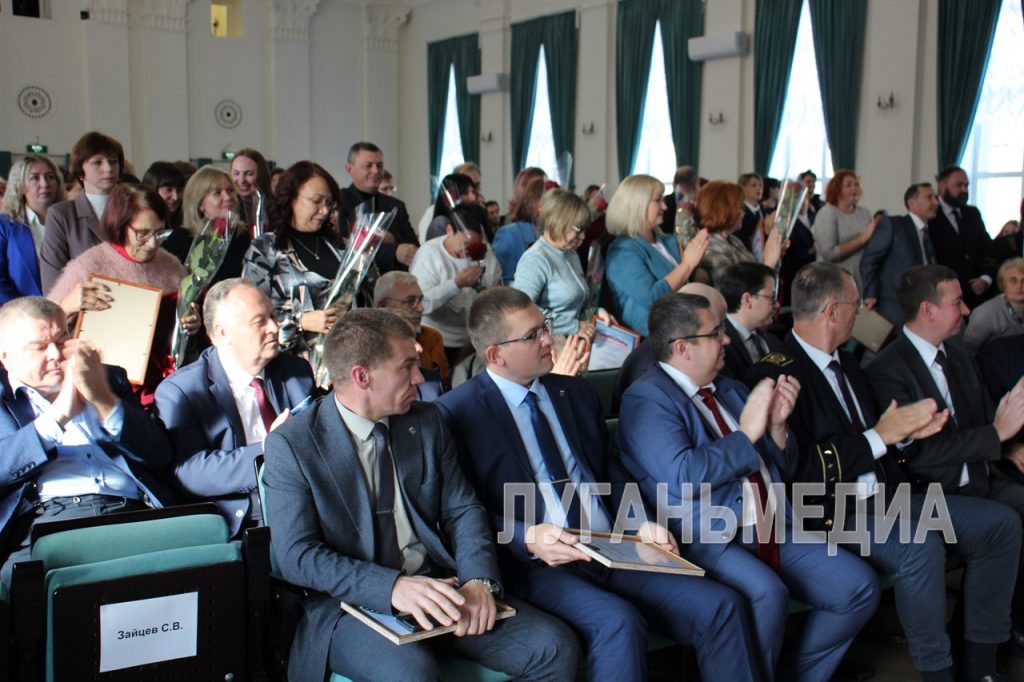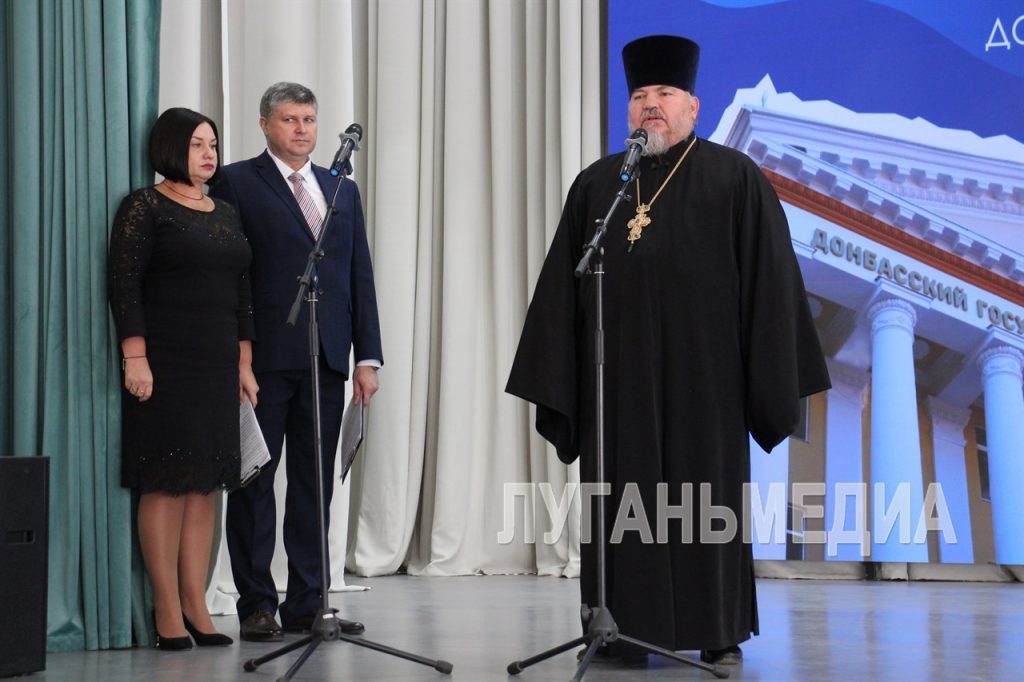 Одним из первых вуз поздравил первый заместитель министра образования ЛНР Евгений Мирошниченко.