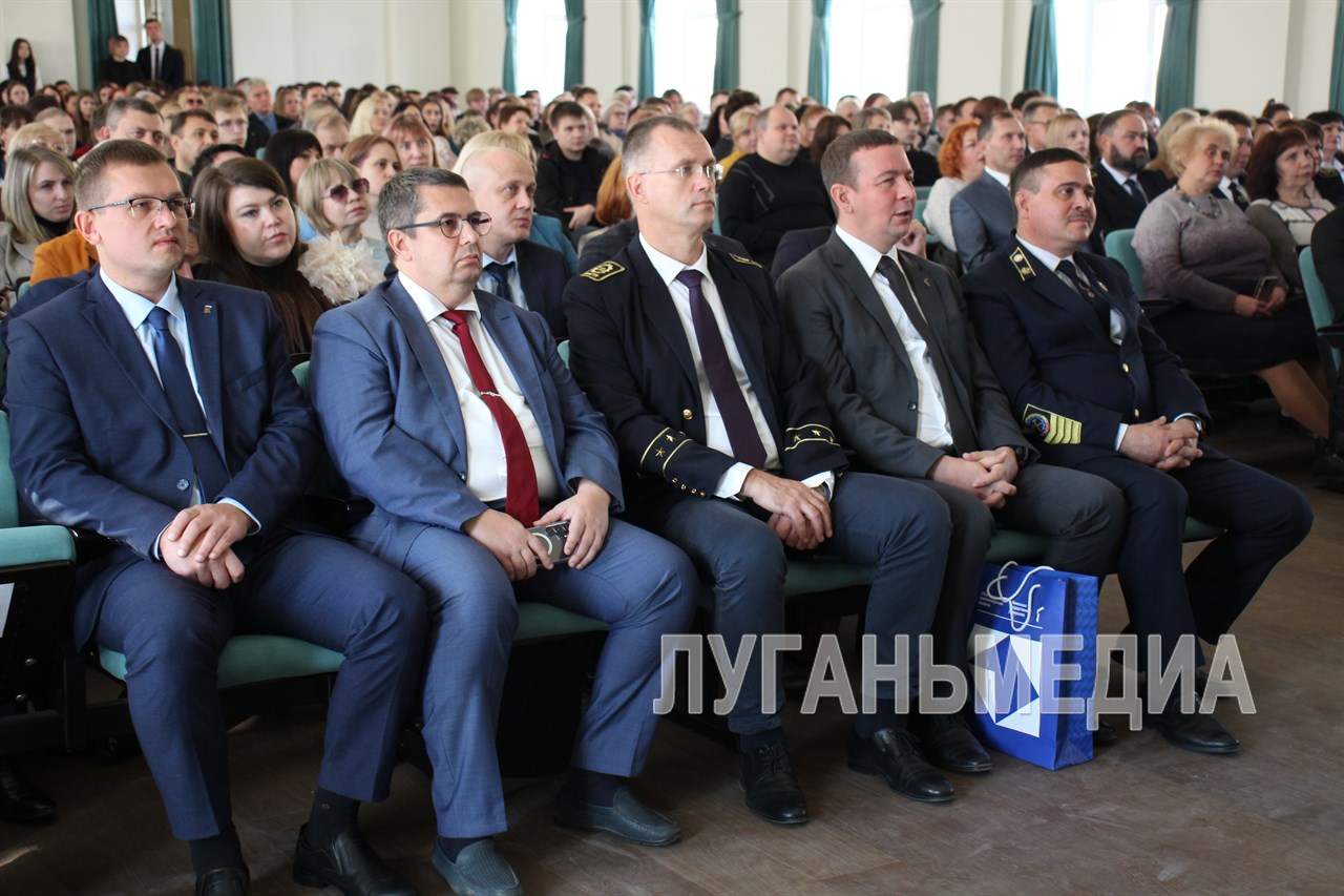 Одним из первых вуз поздравил первый заместитель министра образования ЛНР Евгений Мирошниченко.