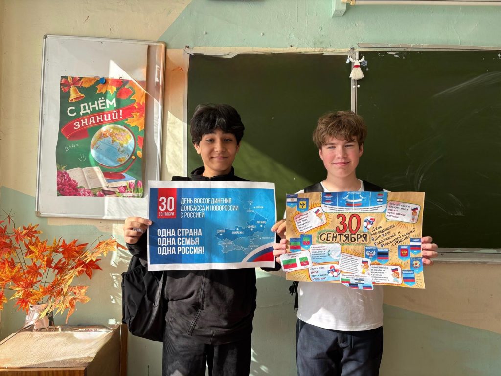 В текущем учебном году прошли тематические классные часы в школе №20 города Череповца и в учебно-воспитательном комплексе «Надежда» города Алчевска. Ученики познакомились с очень значимыми событиями из истории нашей великой страны, расширяя знания о её прошлом и настоящем.