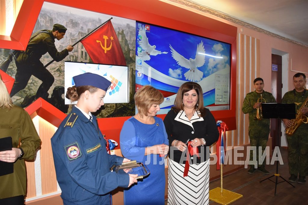 После торжественной части гости мероприятия переместились на второй этаж школы, где прошло праздничное открытие мультимедийной звезды Победы, в центре которой расположены экраны. Интерактивная панель появилась в одной из школ города благодаря поддержке Министерства образования и науки ЛНР и личному участию Ивана Кусова. Всего в республику было доставлено 5 таких звезд Победы.