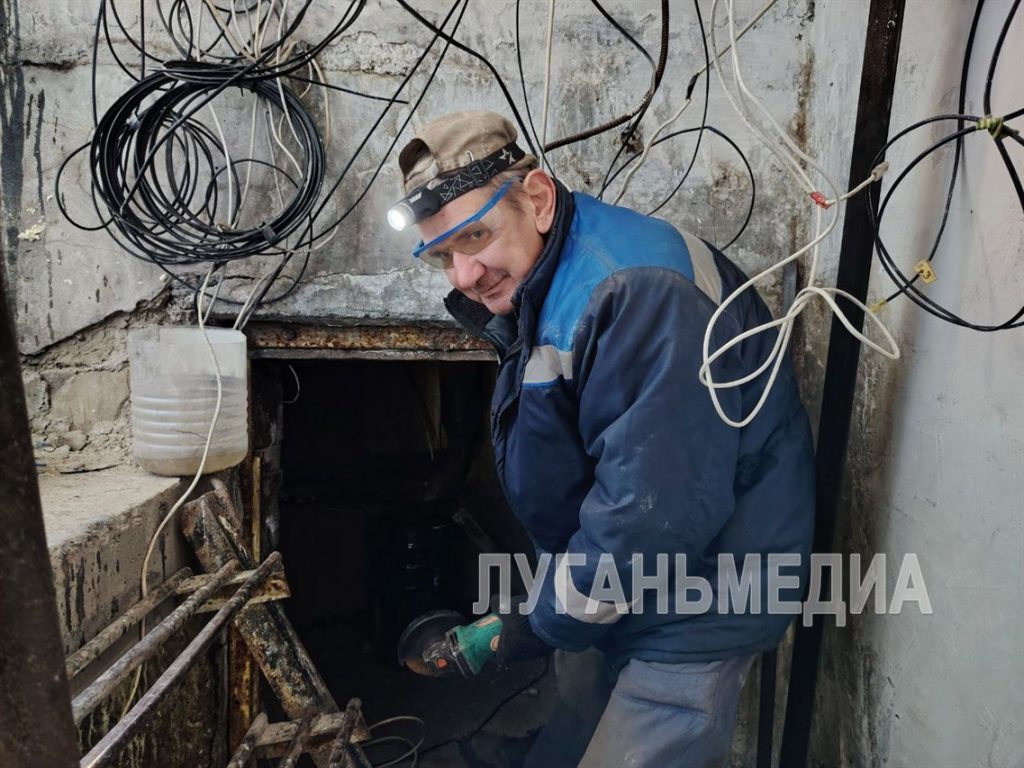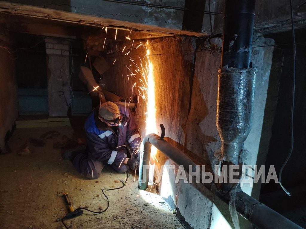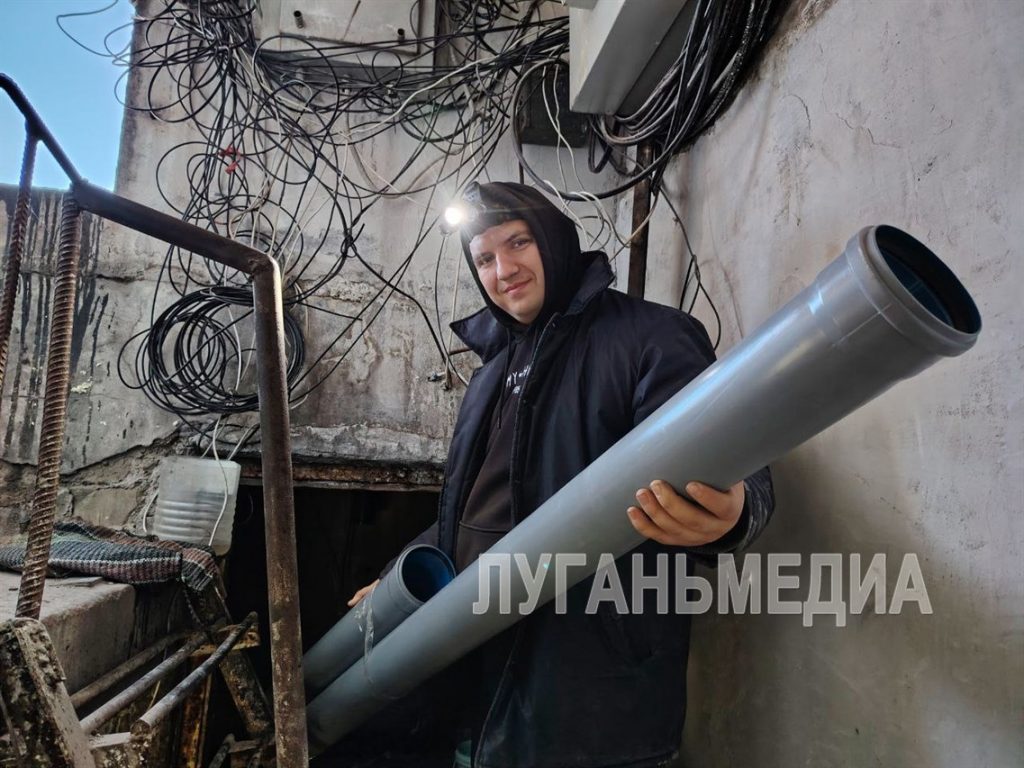 Сотрудники Стахановского филиала ЕУК работают по замене ливневой канализации в одном из подъездов дома №1 по улице Олимпийской.