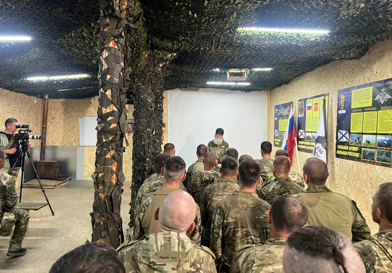 Фото: Отец Владимир Мартышин с бойцами в Храме на передовой