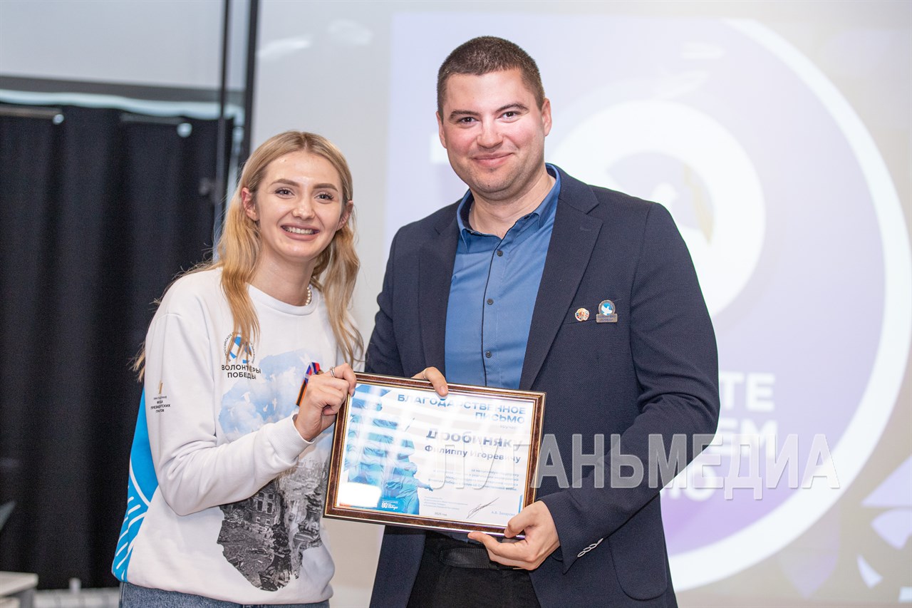 – Сегодня празднуется десятилетие наших передовиков – Волонтёров Победы. Это одно из самых передовых движений в патриотическо-духовно-нравственном воспитании молодого поколения. Мы много можем рассуждать о том, какую работу вы выполняете, какие вы большие молодцы, но один из самых ярких примеров, который в этом году произошел, думаю, все это знаете, это Поезд Победы, где мы установили Всероссийский рекорд по посещаемости. Это в первую очередь ваша заслуга, и здесь большие молодцы, в первую очередь вы. От лица министерства я вас поздравляю с этим знаменательным днём. Желаю только наращивать свои силы и успехи. И я думаю, что с таким руководителем, как у вас, у вас-то обязательно получится.