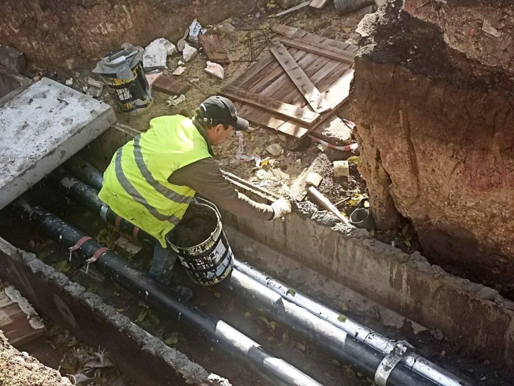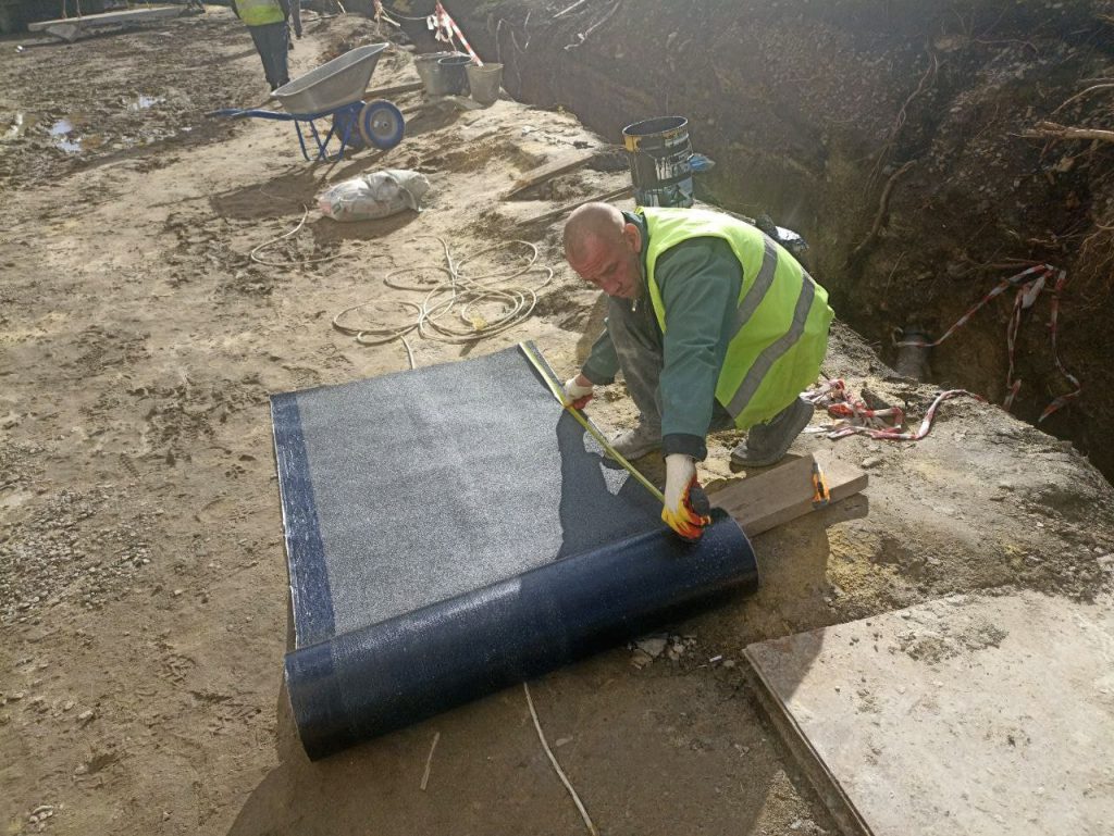 На сегодняшний день строители выполнили прокладку системы отопления по улице и уложили теплотрассу длиной 70 метров в специальные защитные лотки, которые тщательно закрыли и гидроизолировали. Для надежной защиты трубопровода применена комплексная изоляция: на лотки нанесли мастику, а сверху — наплавляемый изоляционный материал. После завершения гидроизоляционных мероприятий траншея будет аккуратно засыпана и уплотнена. Ранее на объекте была установлена новая котельная и дизельная подстанция.