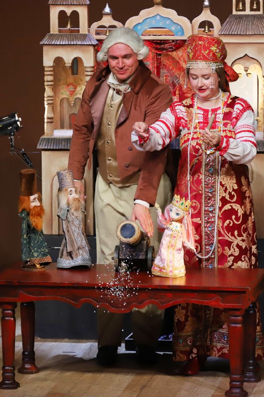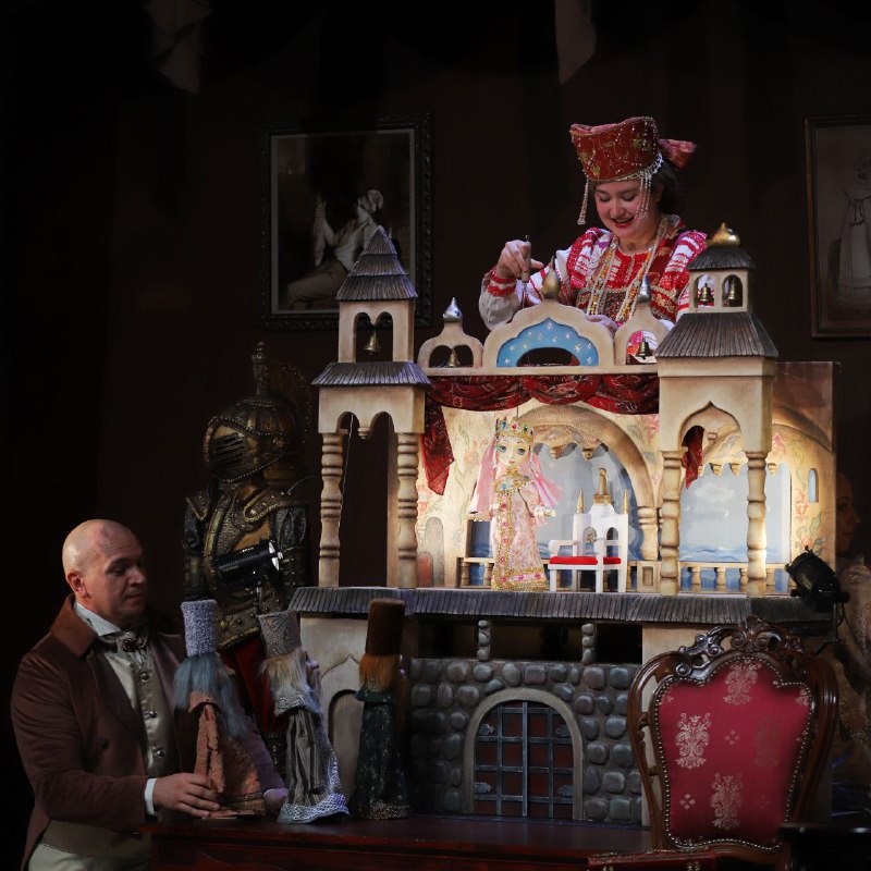 – На репетициях мы уже сводим воедино кукол и актеров, чтобы все наши наработки и видения персонажей совпадали с видением спектакля режиссёра, – продолжает Евгения Кильдибекова. – Спектакль «Сказ о Царь-девице, удивительной царице, о её друзьях и недругах, о справедливости и смелости» мы очень любим. Все персонажи, их характеры, движения, голоса появились путем большого труда, проб и ошибок. Этот спектакль – совместный проект нашего театра и ГАЦТК им. Образцова, его режиссером-постановщиком стал народный артист Российской Федерации Владимир Беркун. Благодаря его колоссальному опыту нам удалось создать нашу «Царь-девицу…» Одной из главных задач, которые он ставил, была актерская ансамблевость, чтобы мы могли с полувзгляда понимать друг друга. Мне как молодой артистке было страшно не оправдать ожиданий или не соответствовать требованиям такого режиссера. Ведь работа серьезная, характер многогранный. Тяжело было нащупать в себе именно мудрость правителя. Царь-девица юна, но тем не менее, она глава государства, ответственная за судьбу целого народа. Она хрупкая, но сильная и должна принимать решения, от которых зависят жизни ее людей и ее собственная. Эта история, оторванная от меня самой. И именно такая сложная, многослойная роль бросает вызов. Сможешь ли ты настолько сфокусировать внимание на таком количестве деталей – характер, манера, походка, осанка, мимика – и самое важное, быть в симбиозе с куклой? Мы должны были стать одним целым, чтобы движения не выбивались из образа, чтобы в каждом полуповороте головы читалась точно та эмоция, которую ты закладывал, чтобы ни один шаг не был просто кукольным или просто человеческим. Конечно, успех «Царь-девицы…» состоялся благодаря прекрасной команде. Мои коллеги – заслуженные артисты ЛНР.