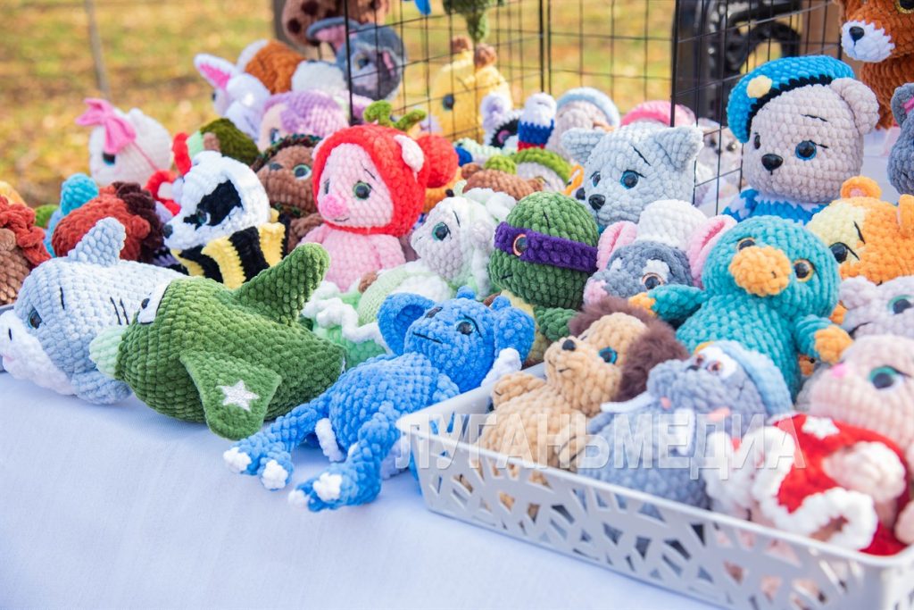 Руководитель клуба «Этника» Наталья Скосырева пришла в парк Горького показать луганчанам образцы народного декоративно-прикладного искусства, созданные участниками организации: