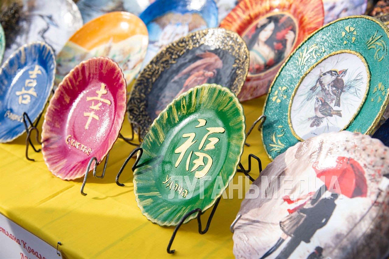 Светлана Коваленко посвятила декупажу (техника декорирования предметов – прим.) тринадцать лет. На гуляниях она представила декорированную посуду: