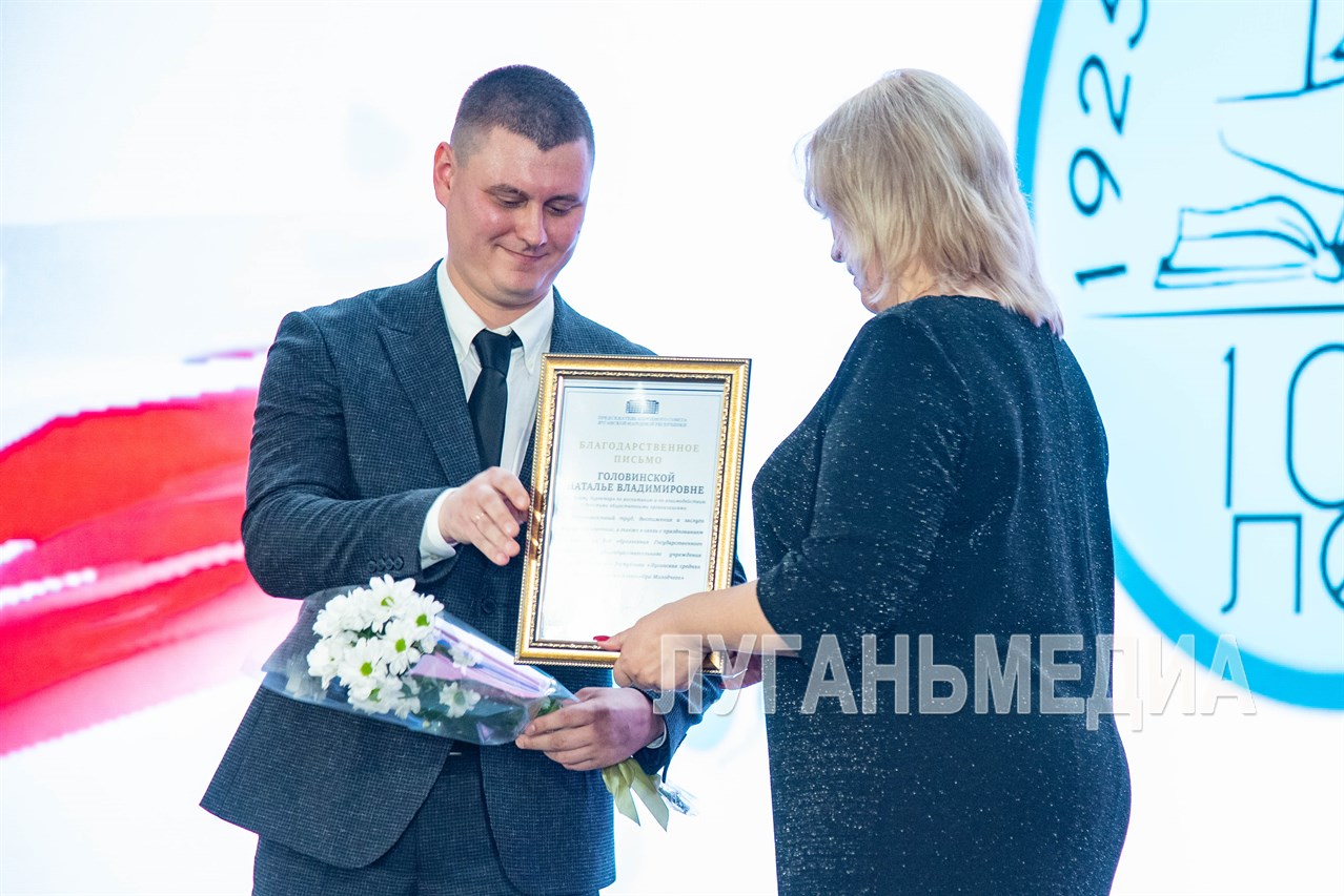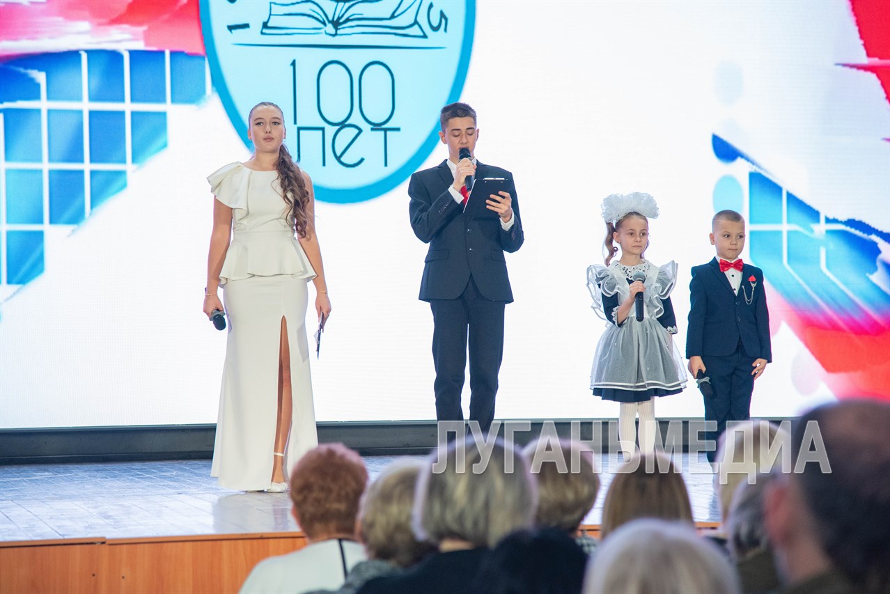 В актовом зале Далевского университета прошло торжественное мероприятие, посвященное столетию луганской школы №13 имени Александра Молодчего, расположенной в Каменнобродском районе города.