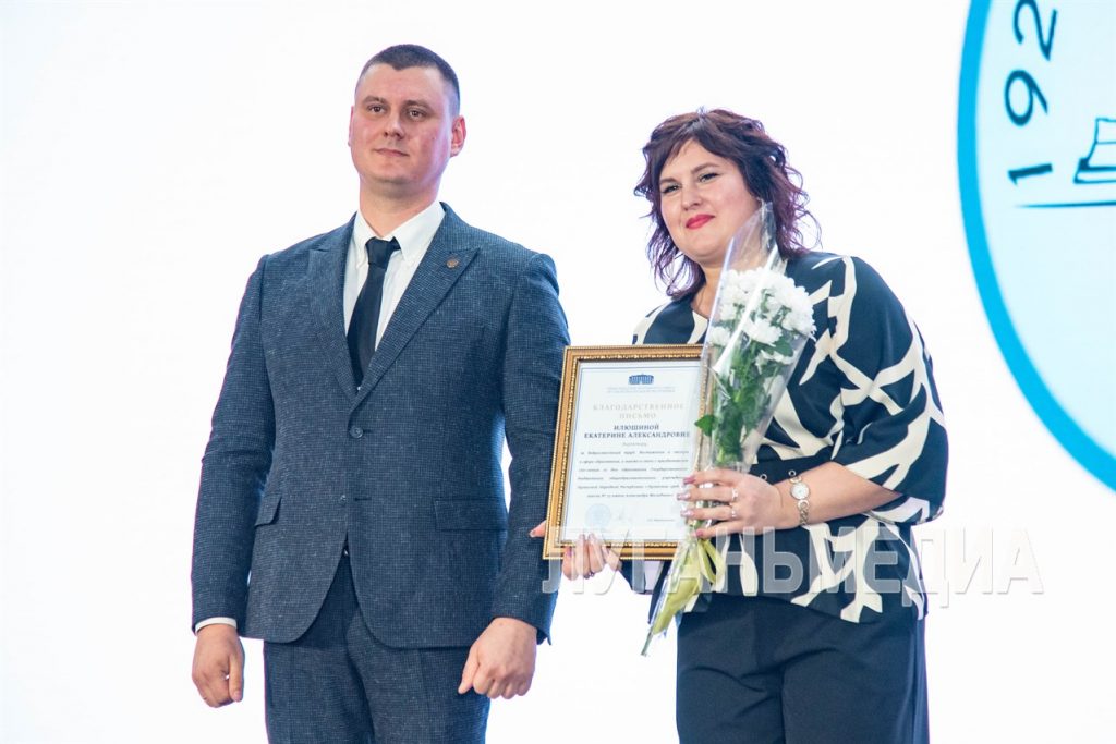 Сенатор РФ от ЛНР Ольга Бас поздравила школу с юбилеем от имени Совета Федерации, вручив ее директору благодарственное письмо от верхней палаты Федерального собрания.