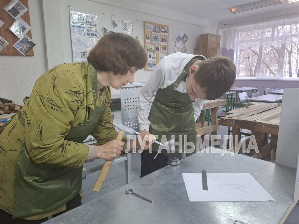 Сегодня на базе Краснолучского учебно-воспитательного комплекса № 5 «Перспектива» имени Героя СВО М. В. Снитко» в 7 классе состоялся мастер-класс по изготовлению изделий из тонколистового металла.