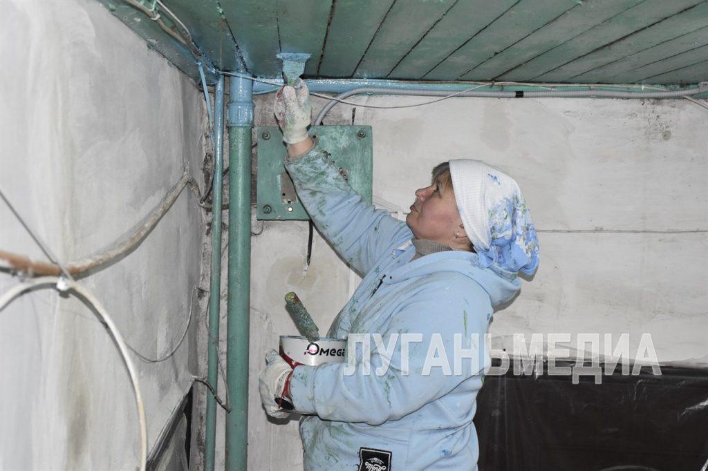 Специалисты краснолучского филиала единой управляющей компании осуществляют ремонт подъездов в многоэтажках. Сейчас звено маляров трудится в доме № 18 по ул. Хасанова.