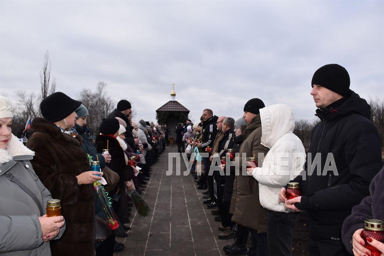 Благочинный Первомайского округа протоиерей отец Василий отслужил заупокойную литию по погибшим воинам. Память павших героев присутствующие почтили минутой молчания и возложили лампадки с зажженными свечами в часовне.