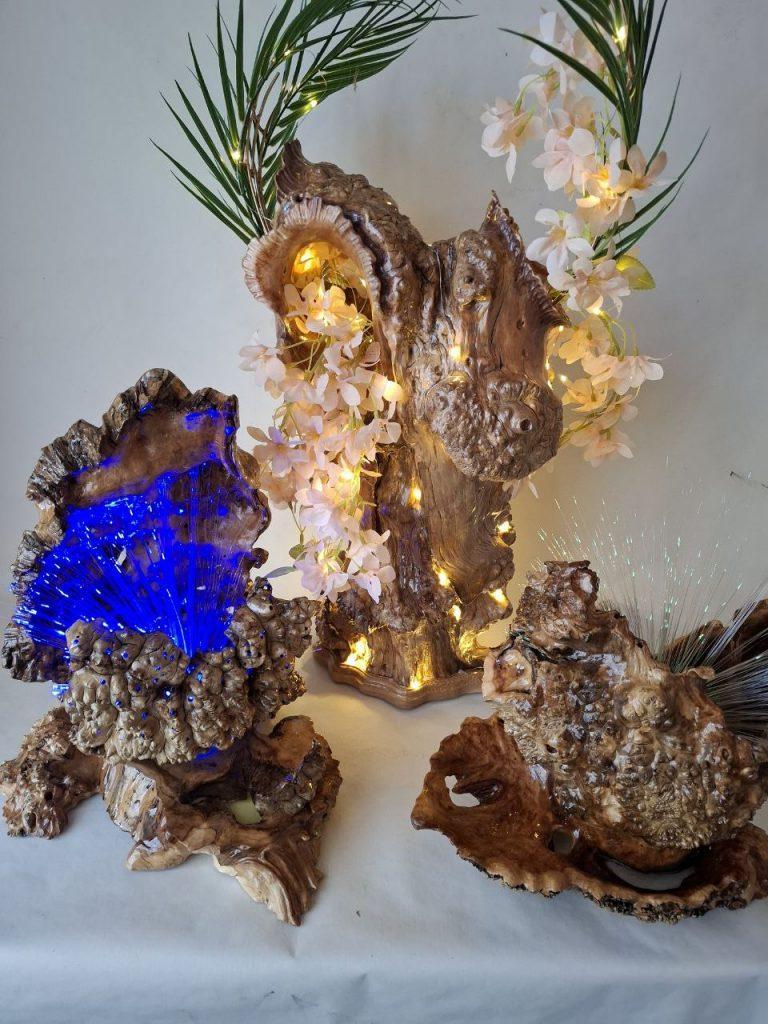 Новые работы Сергея Иваненко – это целый мир, в котором переплетаются природная фактура и авторская фантазия. В изгибах дерева угадываются сказочные существа, а мягкий свет, встроенный в композиции, словно придает им дыхание.